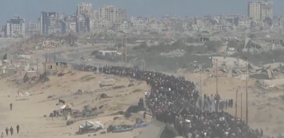 Bölgeden gelen görüntülerde, Filistinlilerin binler halinde Kuzey Gazze’den güneye doğru hareket ettiği görülüyor.