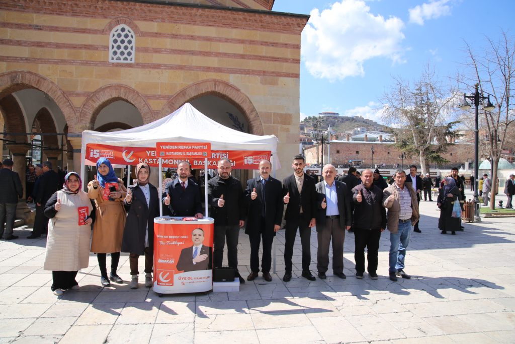 Kastamonu Nasrullah Meydanı’nda Yeniden Refah Partisi İl Başkanı Akif Güzel, teşkilat üyeleriyle birlikte sahada çalışmalarında hız kesmeden devam ediyor.