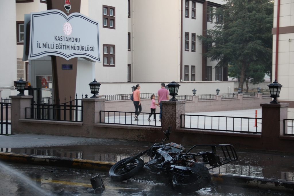 KASTAMONU – Merkez’de Aktekke Yalçın Caddesi Kastamonu İl Milli Eğitim Müdürlüğü önünde saat 18.40 sularında seyir halindeki bir motosiklette yangın çıktı.