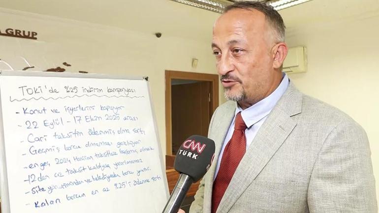 Çevre, Şehircilik ve İklim Değişikliği Bakanlığına bağlı Toplu Konut İdaresi Başkanlığı (TOKİ), konut ve iş yeri alıcılarına yönelik yeni bir indirim kampanyası duyurdu. Borç bakiyesini peşin olarak ödeyen hak sahipleri, yüzde 25 indirim imkanından yararlanabilecek. Peki şartlar ve kampanyanın detayları neler? CNN TÜRK Muhabiri Yağmur Yılman, Sosyal Güvenlik Müşaviri Murat Bal’a sordu.